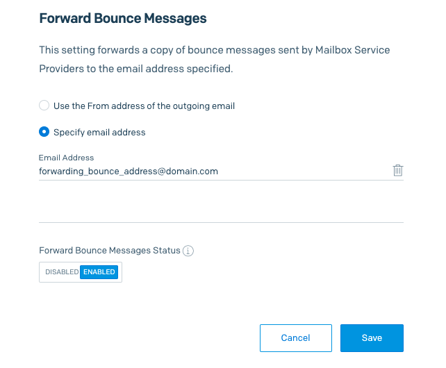 The Forward Bounce Messages option is enabled